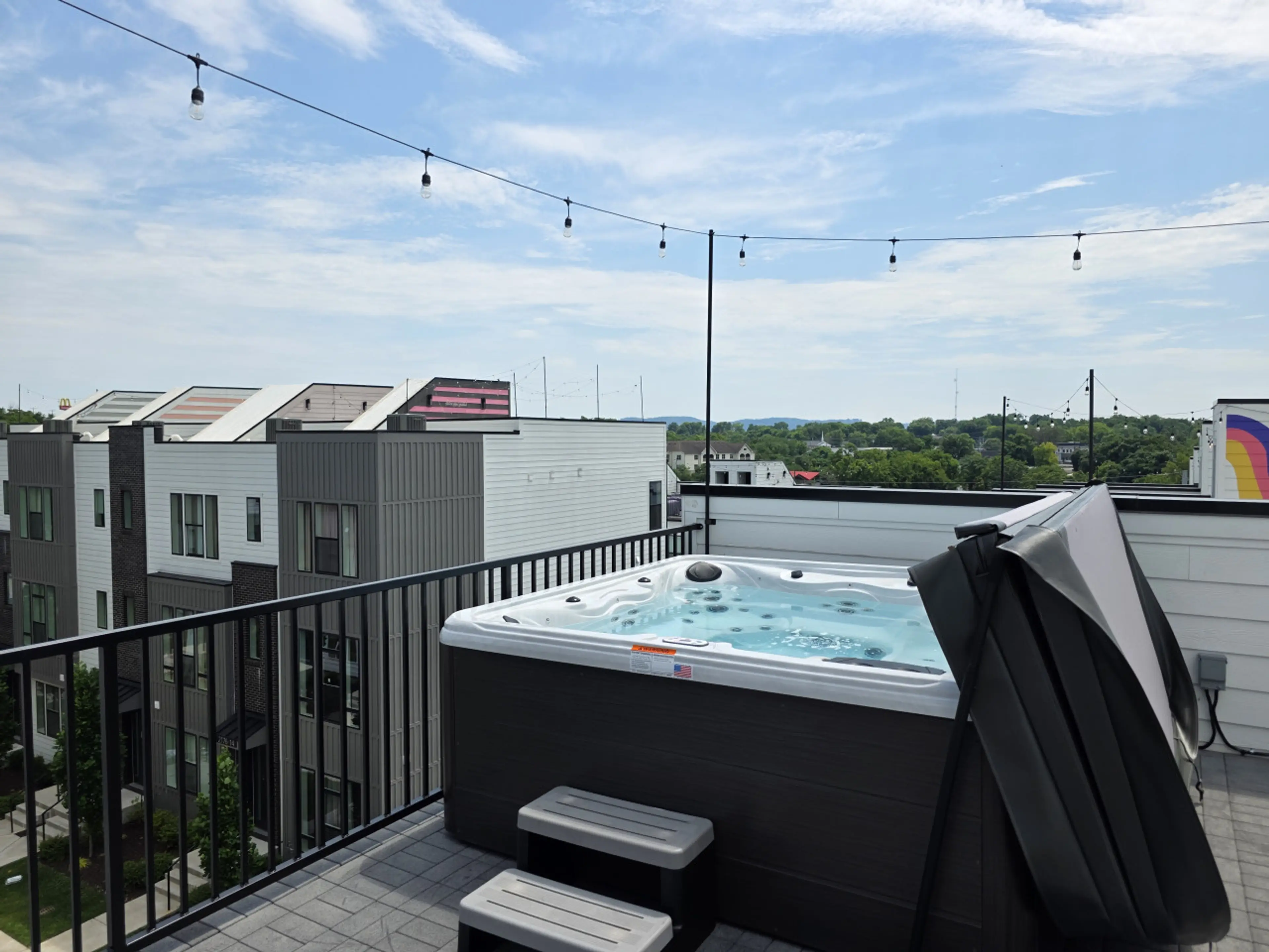 Positives. Clean and modern. Gas range with double oven. Rooftop hot tub W/epic view. Easy Uber to downtown and airport.Cons: Parking not as bad as stated but does fill up. Lots of stairs if you have elderly. Homeless loitering in the evening which is typical for Nashville.Overall: Well priced and would stay again.
