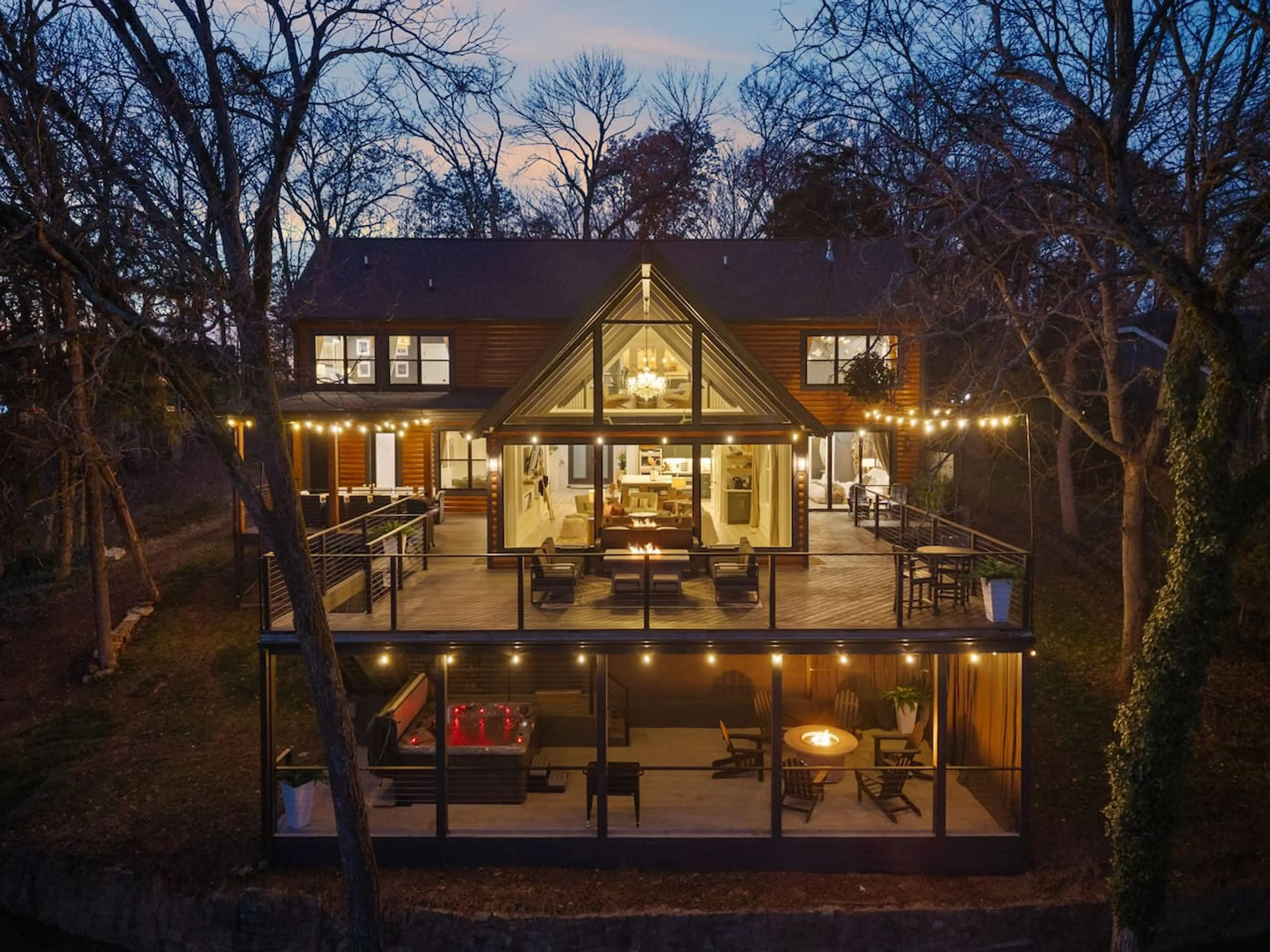Wake up to shimmering lake views at this luxury waterfront retreat just 30 minutes from Nashville. Designed for unforgettable gatherings, this expansive home features six themed bedrooms, a chef-level Café kitchen, wraparound deck with fire pits, hot tub, speakeasy bar, pub room with pool table, and...